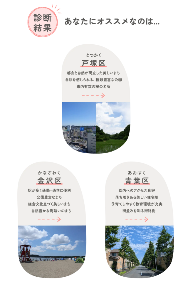 横浜にどんな街があるかわからない…。そんな方は、おすすめのエリアを提案してくれる診断コンテンツをぜひチェックしてみてください。