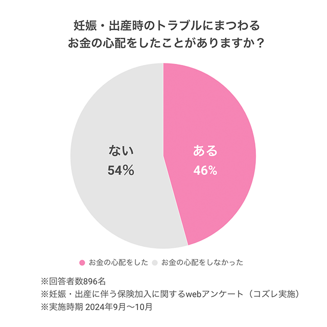 実際、コズレマガジンが行ったアンケートでも、46%の人が妊娠・出産時の入院でお金の心配をした、と回答。