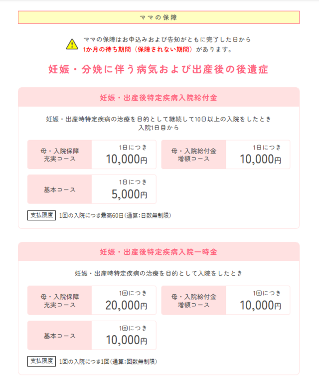 1年目は妊娠中・出産時のトラブルをメインとした保障内容。