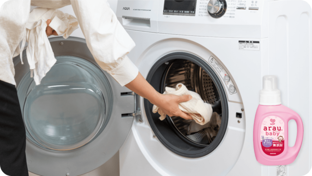 アラウ.ベビーが提案する赤ちゃんのスキンケアは「洗う」「うるおす」「包む」ことまで。肌に直接触れる衣類を洗う洗剤まで、無添加にこだわってあげることが大切だと考えています。