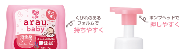 赤ちゃんにやさしいことはもちろんですが、きちんと汚れが落ちることも大切です。アラウ.ベビーは、やさしいだけではなく、それぞれのシチュエーションに適した洗浄力で機能性も満たしています。