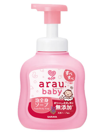 アラウ.ベビー泡全身ソープは、植物うまれのせっけんにサラヤ独自の"肌すこやか成分"を配合することで、肌本来のうるおいを残しながらも汗や皮脂汚れを落とします。