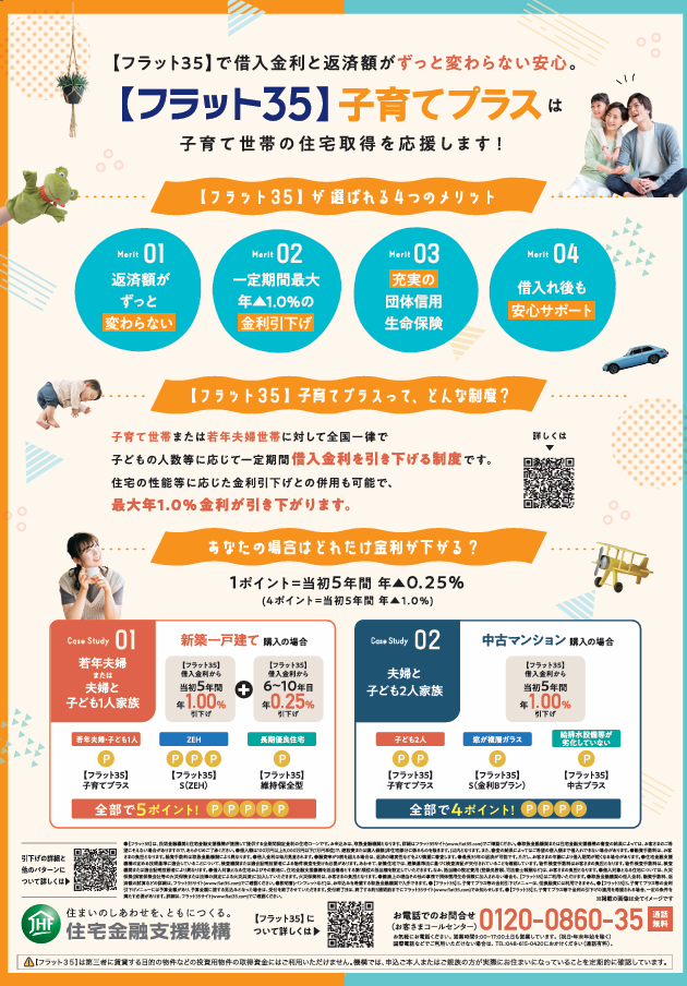 フラット35子育てプラスとは?金利タイプについて詳しくみる資金計画シュミレーションはコチラ返済プラン比較シュミレーションはコチラ ・掲載内容や連絡先等は、現在と異なる場合があります。・表示価格は、改正前の消費税率で掲載されている場合があります。ご了承ください。 関連記事 おうちCO-OPからの出産お祝い!「スマイルボックス」プレゼント! プレスリリース情報 PR 新築だけが答えじゃない?!大阪でリノベーション相談会&見学会実施中 プレスリリース情報 PR 東北限定!ミサワホームWEB来場予約キャンペーン開催中! プレスリリース情報 PR 関連するキーワード