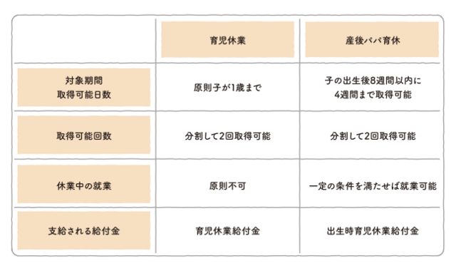 また、父親が子どもの出生直後の時期により柔軟に取得できる「産後パパ育休」という制度もあります。