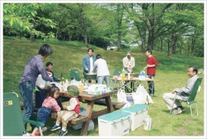 桜の木々に囲まれたバーベキュー広場