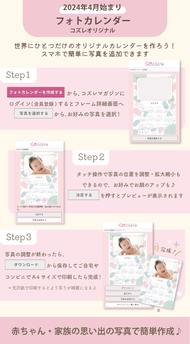 コズレ会員限定【2024年4月はじまり】のフォトカレンダー~花柄デザイン~をプレゼントいたします。