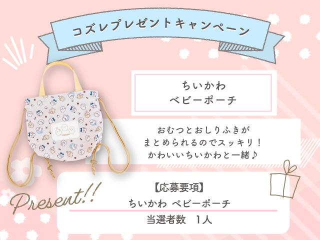 ちいかわデザインが◎おしりふきも収納できる大容量ポーチを抽選でプレゼント!