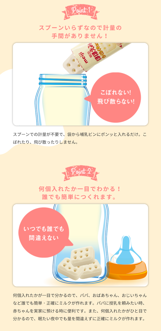 計量いらずでかんたんに作れる「明治ほほえみ らくらくキューブ」