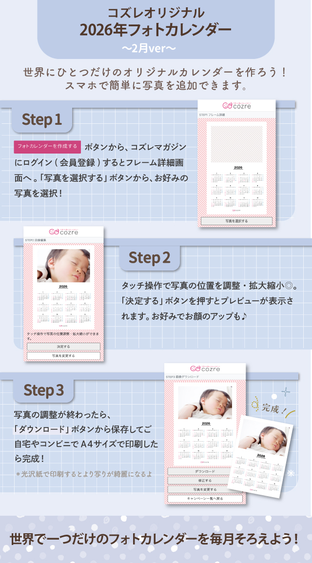 コズレ会員限定【2026年2月版】フォトカレンダーをプレゼントいたします。