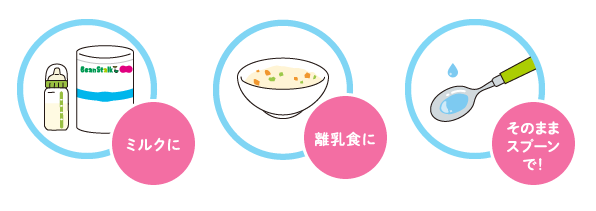 1日6滴ミルクや離乳食に入れるだけで、ヨーグルト約100g分に相当する10億個のビフィズス菌を摂ることができます!