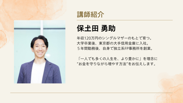 「一人でも多くの人生を、より豊かに」を理念に“お金を守りながら増やす方法”をお伝えします。